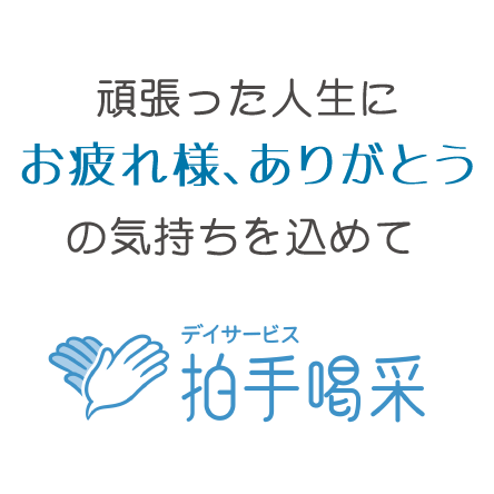古民家活用型デイサービス拍手喝采は、家庭的な雰囲気のなか、ご利用者それぞれのペースに合わせた個別ケアが受けられる憩いの場所です。多彩なレクリエーションや行事などで日常を健康的に過ごせるようサポート。ぜひ、近所や親戚のおうちに訪れる感覚でご利用ください。